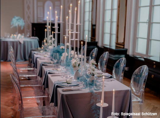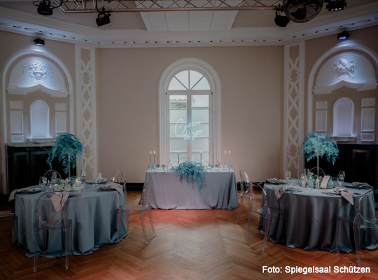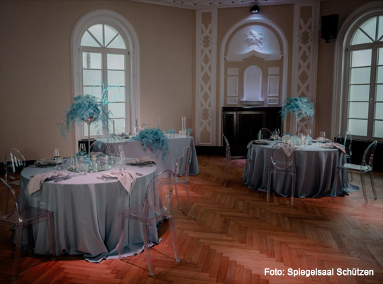 Mitten in Donaueschingen und doch mit einem Hauch vergangener Zeiten empfängt der Spiegelsaal Schützen seine Gäste in stilvollem Rahmen. Hohe Decken, Spiegel und klassische Elemente verleihen dem Raum eine elegante, zugleich warme Atmosphäre. Hier trifft Tradition auf lebendige Eventkultur – genau das Richtige für einen Abend, der aus dem Alltag herausführt.